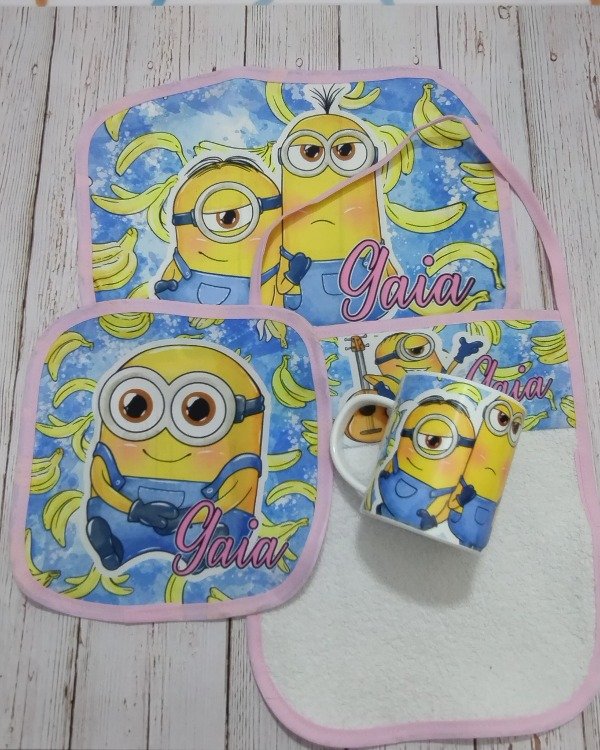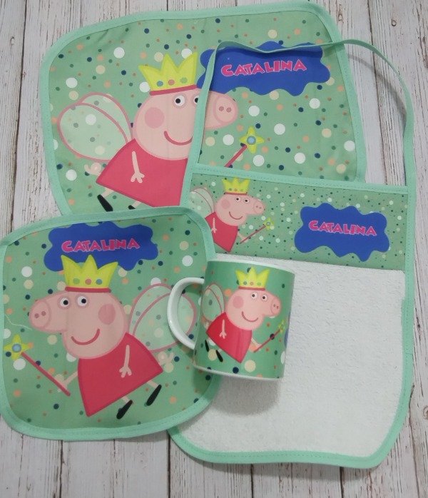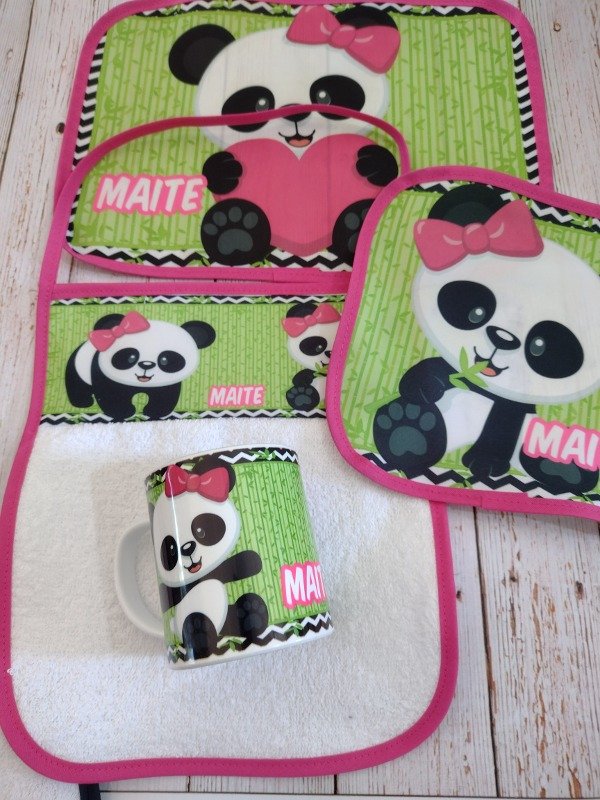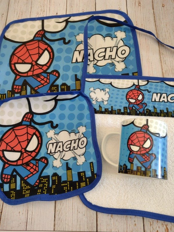 SET DE JARDIN CON SERVILLETA, TAZA, INDIVIDUAL IMPERMEABLE Y TOALLA CON TIRA PARA COLGAR